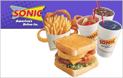 When we went to South Carolina in 2008, we ate Sonic 4 times in a week. We go for the experience, the roller skating car hops, the drive-in, the TATER TOTS, the fantastic drink combo's, and the desserts! The food at Sonic is fast food, just different from your everyday McD's, Burger King and Taco Bell. I personally like the popcorn chicken, tater tots and Sweet Tea. In fact the Tater Tots are so yummy, when I dropped one on the car floor the other day...I still ate it, I know, Erica was mortified, but hey! 3 second rule right?